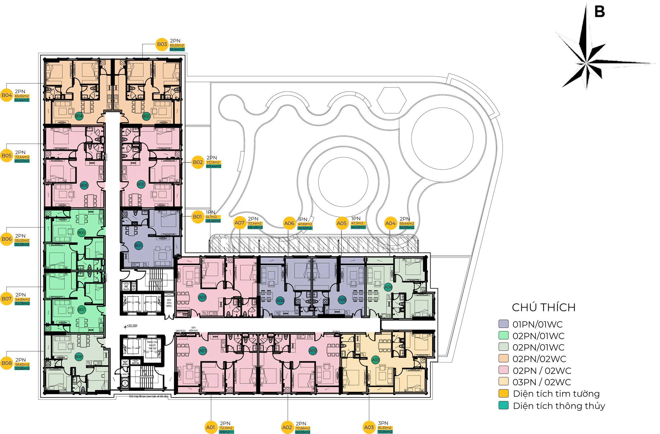 Diện tích căn hộ: 44,72 m² – 75,10 m²